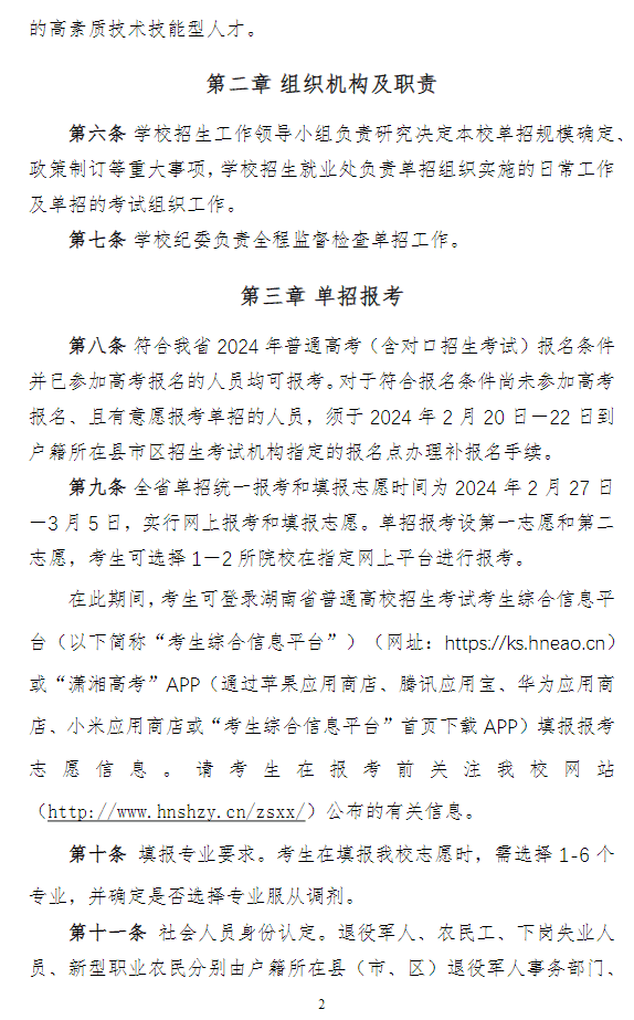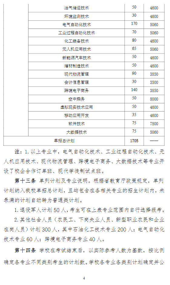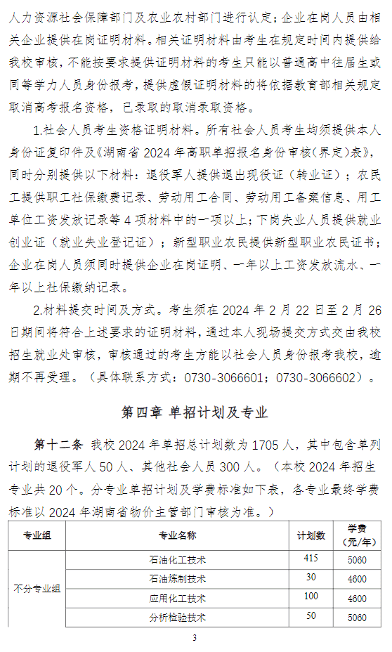 湖南石油化工职业技术学院2024年高职单招章程